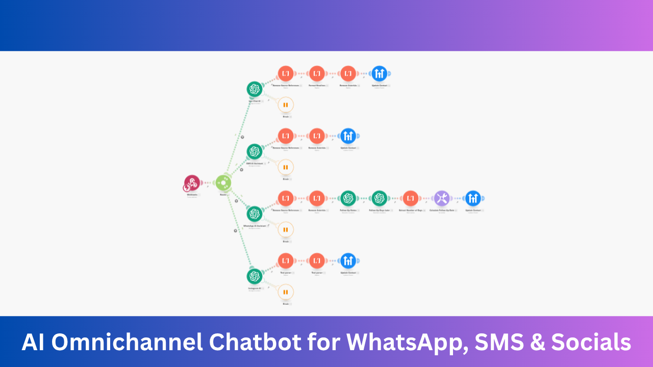 Every business, agency, or freelancer knows the pain of missed messages, delayed follow-ups, and scattered customer conversations across WhatsApp, SMS, and social media inboxes. Responding manually wastes precious hours, leads to inconsistent replies, and makes scaling customer engagement nearly impossible. Enter the AI Omnichannel Chatbot for WhatsApp, SMS & Socials—a powerful, ready-to-deploy automation toolkit designed to turn scattered, time-consuming communication into a streamlined, 24/7 automated workflow. Whether you’re a small business, a growing SaaS team, or an agency juggling multiple clients, this AI-powered chatbot ensures no inquiry slips through the cracks and every prospect receives an instant, personalized response every single time. Let’s dive into how this system transforms the way you interact, convert, and support your audience in today’s fast-moving digital world.